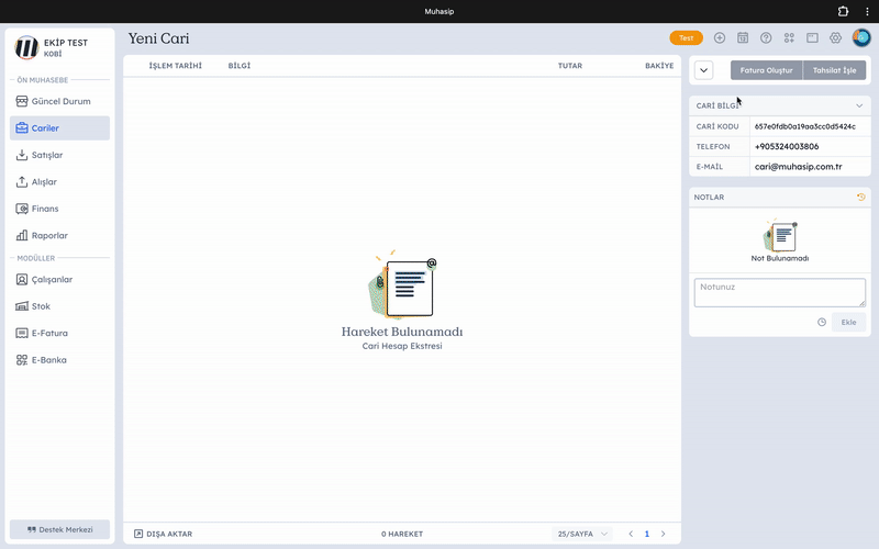 7.Cari borçlandırma işleminiz başarıyla gerçekleştirilmiş olacaktır.